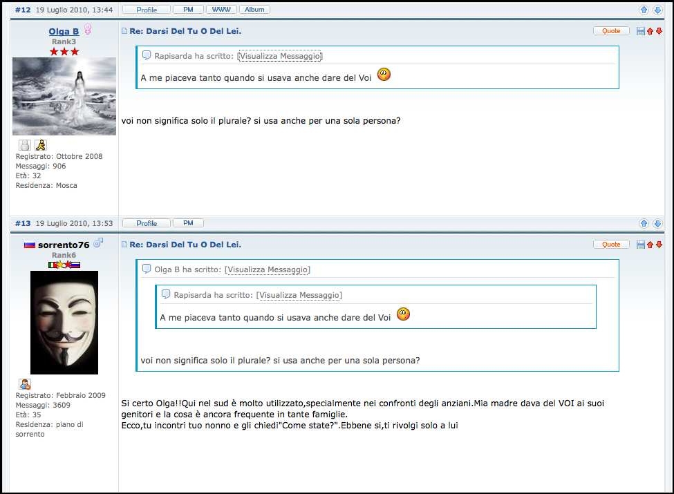 Ti sei mai trovato in una situazione in cui le persone si davano del VOI? Raccontalo nel forum e confronta la tua risposta con quella degli altri utenti.